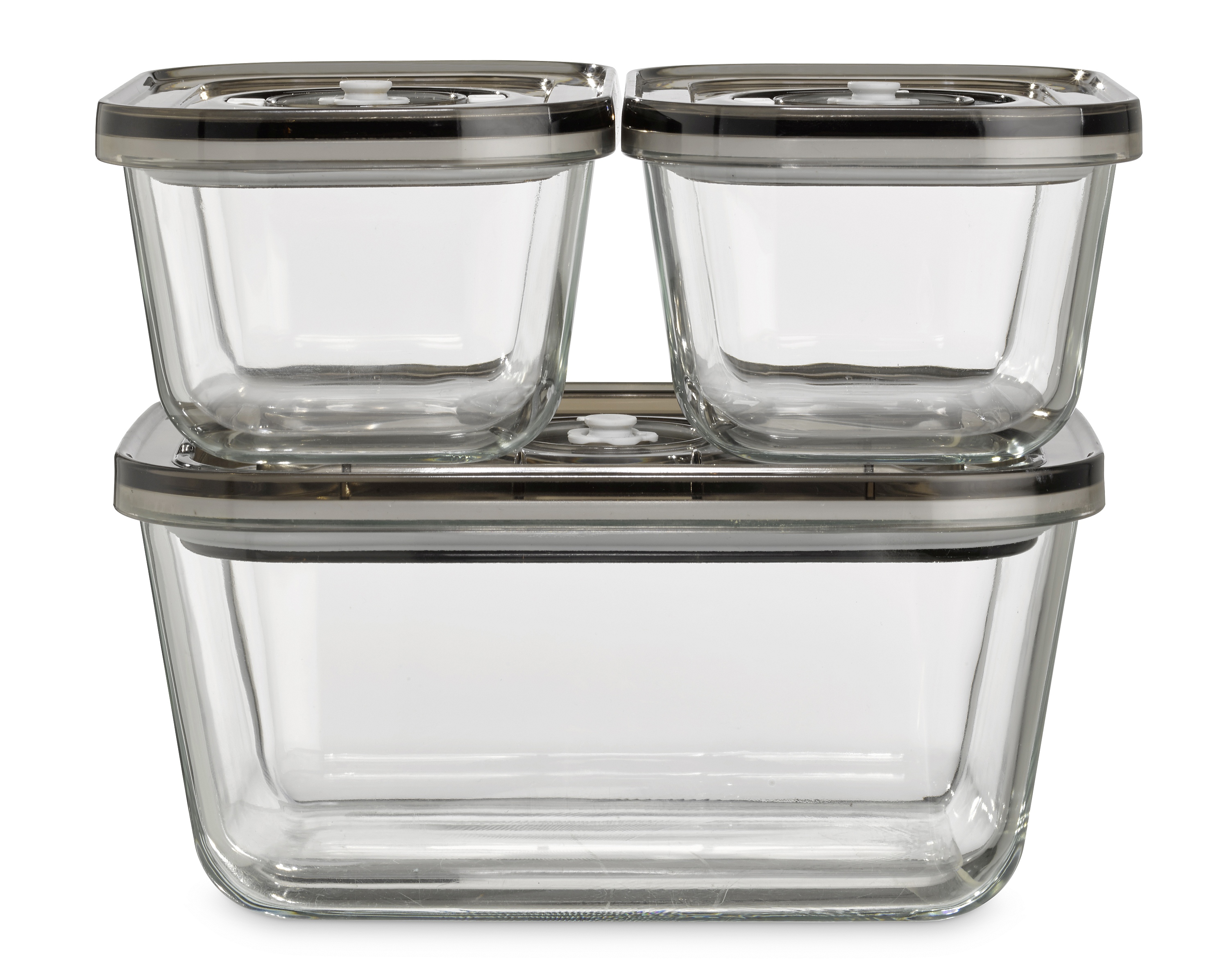 Stapelbares Vakuumbehälter-Set aus Glas mit Kunststoffdeckel