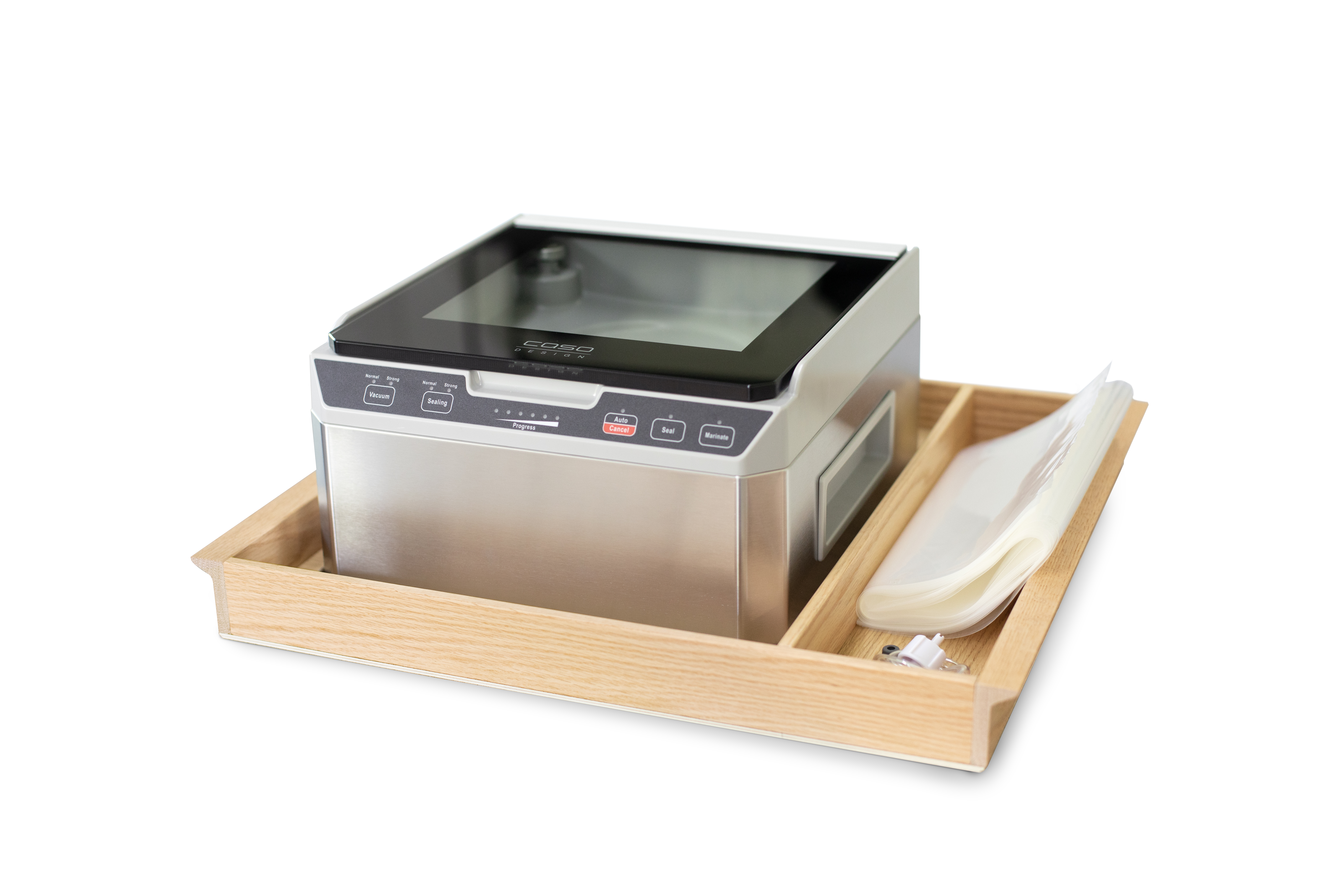 - Vakuumieren auch außerhalb des Gerätes mit Strukturbeuteln möglich